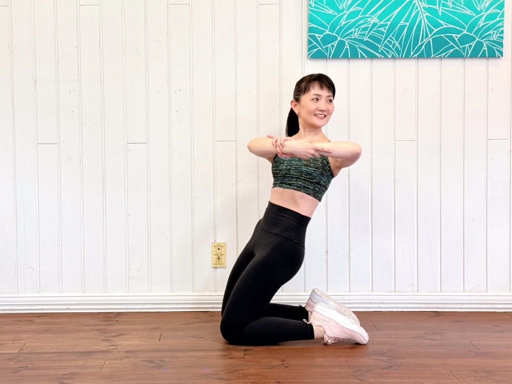 すっきり凹んだお腹、くびれたウエストを目指して、お腹をひねるエクササイズ「リーンバック・ツイスト」に一緒にチャレンジしましょう!