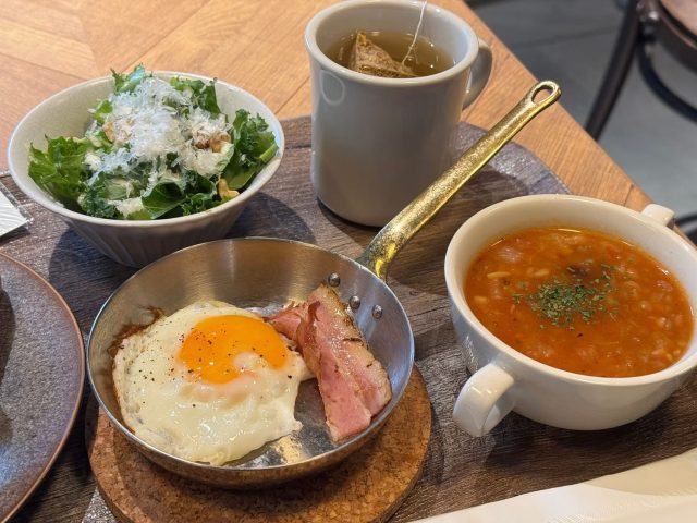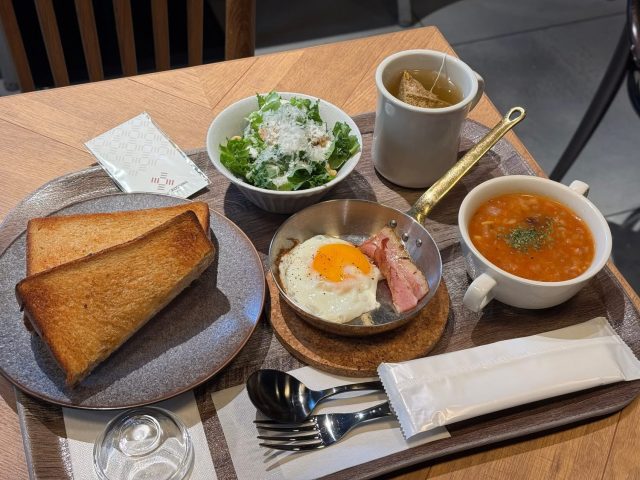 中でも「リッチモーニング」はトーストとサラダ、ベーコンエッグとミネストローネ、ドリンクがセットになって850円!