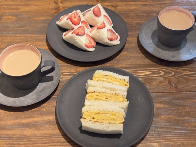 私はその中からこの日、絶対に食べたい!と心に決めていた数量限定のフルーツサンドをオーダーしました。今の季節は苺サンドイッチ。苺の美味しい時期に食べたいと思っていたんです。
