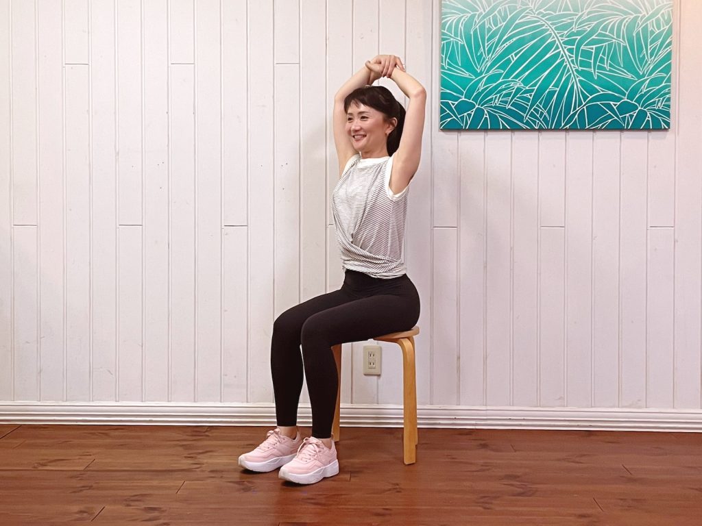 3) 自然に呼吸を続けながら背中と肩を伸ばす
