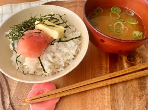 ある日のかんたん朝ごはん:めんたいこ×のり×バター