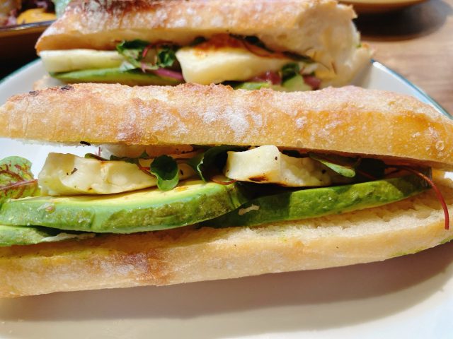 ハルミチーズのムチッとした歯応えとアボガドの相性が抜群。パンも香り豊かで絶妙な厚み。