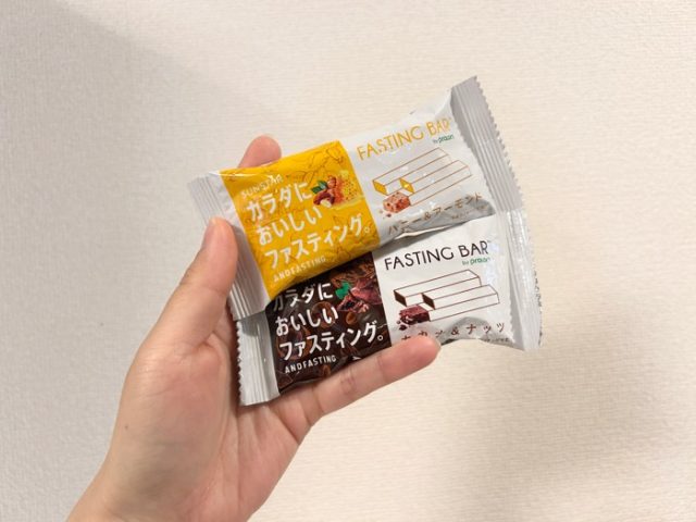 ずっしりしていて満足度が高く、白砂糖不使用で置き換えファスティングや、ファスティング時の準備食や回復食で頼りになるおいしいヘルシーフード!サンスター「カラダにおいしいファスティング ファスティングバー」です。