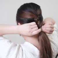 後ろの髪を三つ編みにする