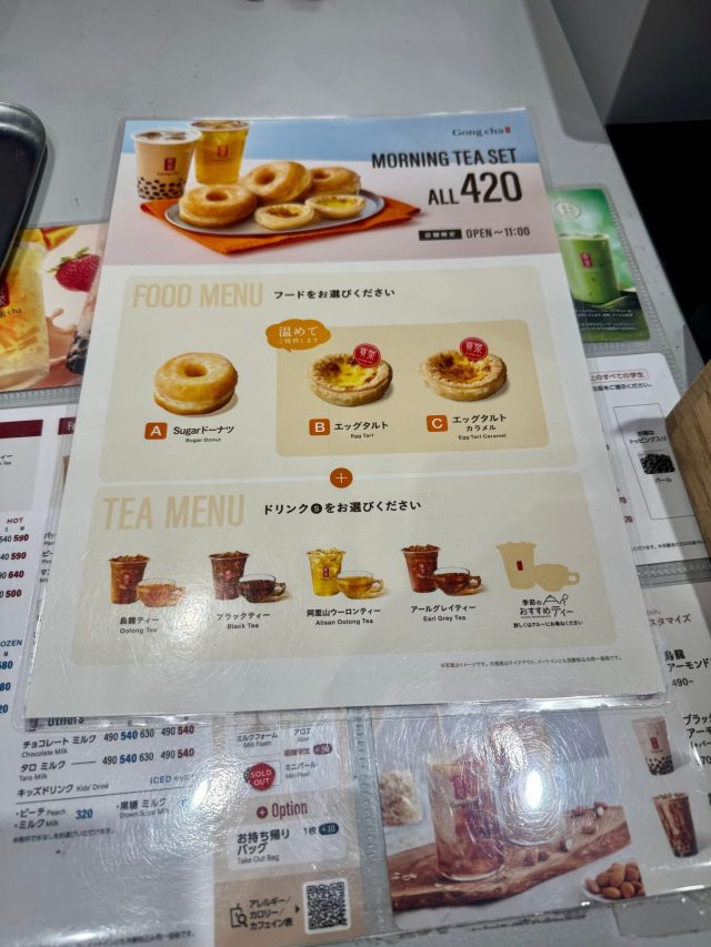 お茶好きの方は、ゴンチャのモーニングがオススメです。