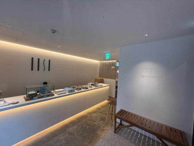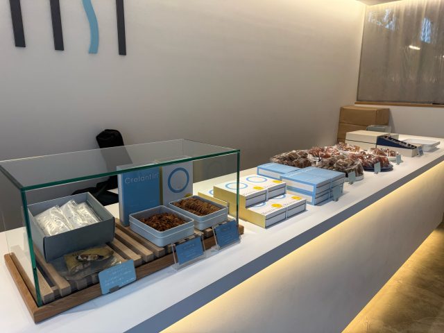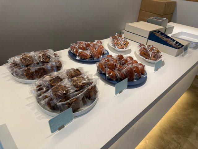 エレベーターの扉が開くと、わ!素敵。白壁の素敵な空間が広がっています。焼き菓子も並んでいておいしそう。