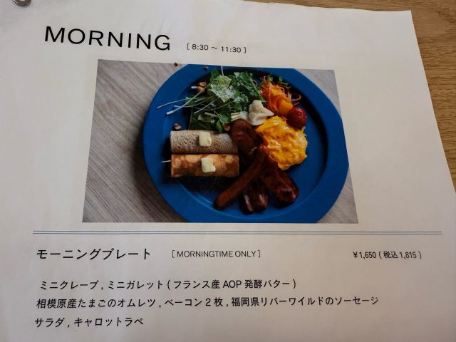 朝のメニューはこちら。モーニングプレートをオーダーしました。