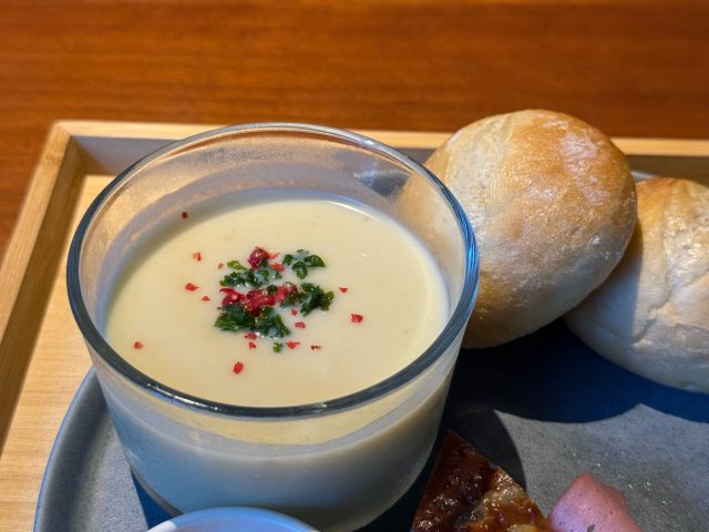 季節限定だという冷製コーンポタージュスープのセットをオーダー。