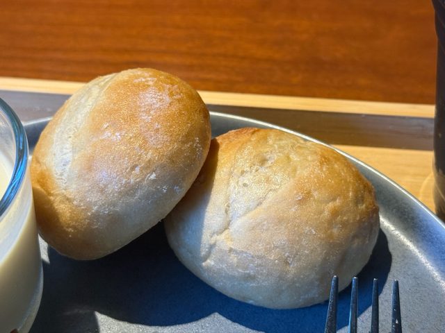ハイジがスイスの山の上で食べていそうな白パンです。柔らかくて小麦の優しい甘味の味わいがあります。温めてくれていておいしさ増し増し。延々と食べたい。