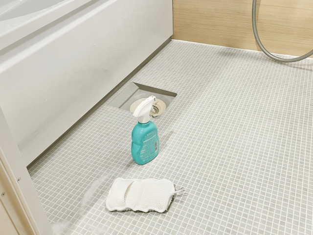 皮脂汚れや石鹸カスはカビのエサになるので、汚れをしっかり落とすのが大事!まずは普段使っているお風呂用洗剤で、床や壁などを磨きましょう。