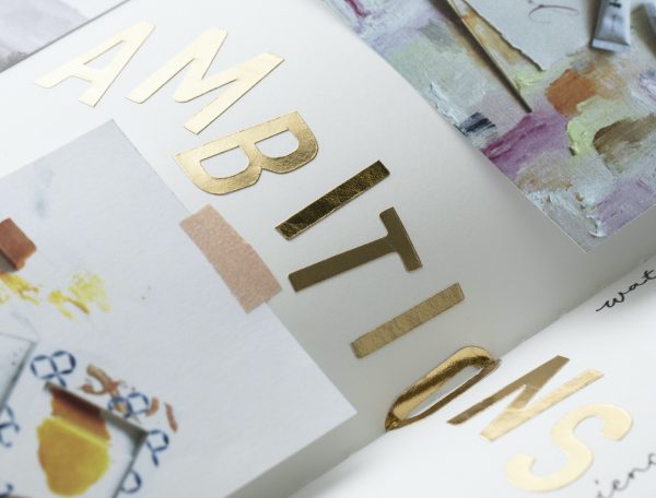 上記の写真は、島野さんが書家としての大望や旅したい場所など、夢をイメージした写真やポストカードをコラージュした1ページです。