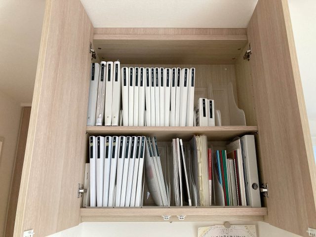 しっかり管理しておきたい書類。ジャンル別にファイル管理やボックス収納をしましょう。わが家は、リビング収納内に書類専用の棚を用意。カテゴリー別にファイルをつくり、ラベリングで家族に共有、「あの書類どこ?」と探さずとも見つかる仕組みを整えています◎