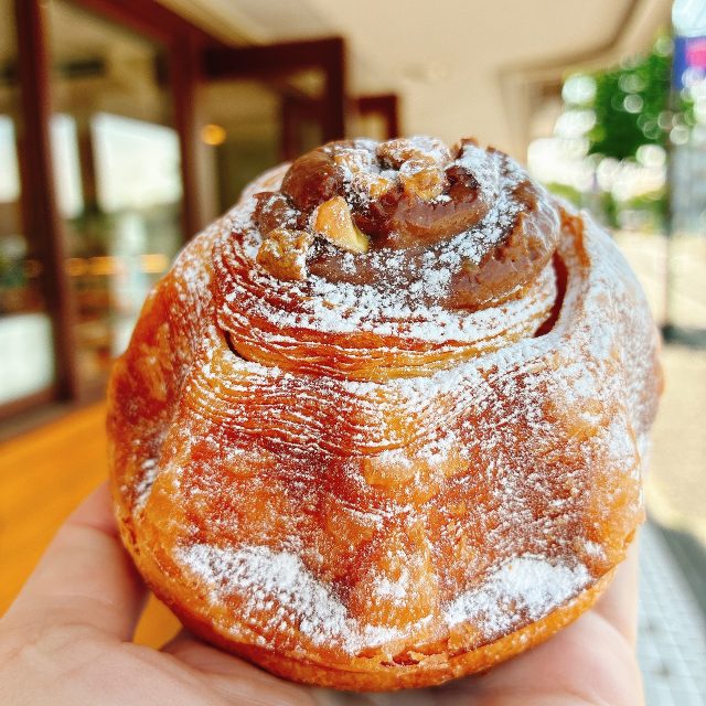 フィリングの味わいで、こんなにもデニッシュ全体の味わいの印象が変わるのかというくらい感激。お気に入りの一品です。上にかかったゴマも口内の味変に一役買ってくれています。