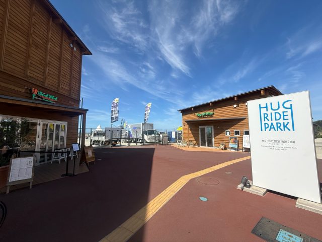 お目当てのお店は海岸沿いの素敵な施設「HUG RIDE PARK 鵠沼海浜公園」の中にあります。ムラサキスポーツのショップやスケートパークがある施設。開放感があります。