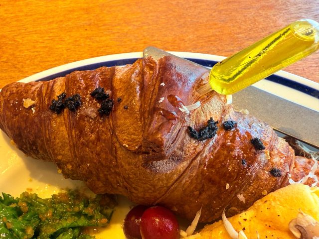 クロワッサンは塩加減が丁度良い。バターの風味も感じます。外はパリパリ、中はしっとり。汗をかく夏に食べたいクロワッサンです。