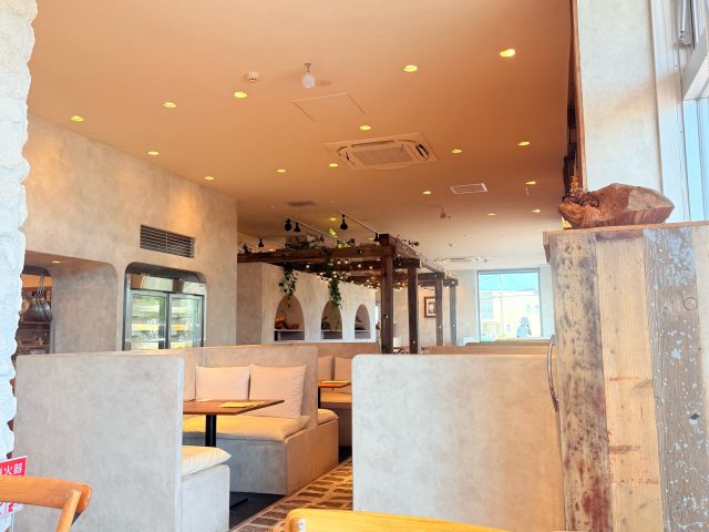 白をベースとして窓を大きく取った店内は開放感たっぷり。南国を思わせる音楽が流れていてリゾートに来たみたい。