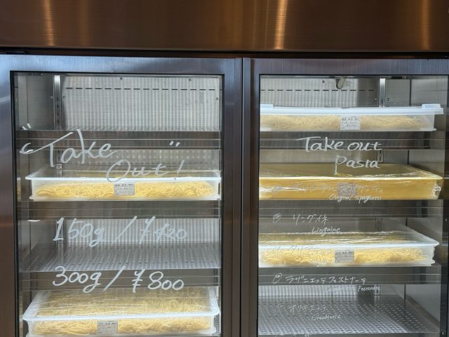 ショーケースの中にはテイクアウトもできるパスタが色々。種類も豊富です。