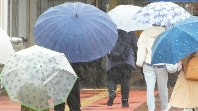 雨が結構激しく降っている。