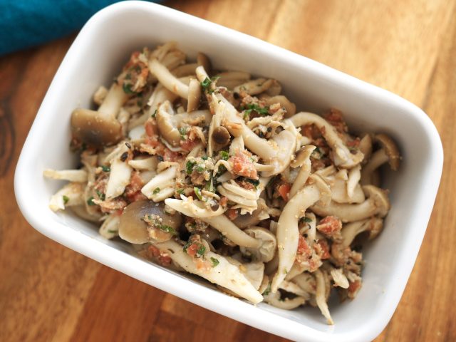 きのこ×梅干しの腸活レシピもおすすめ!食物繊維たっぷり・低カロリーの「ぶなしめじ」の副菜レシピ。ノンオイルで安心です。