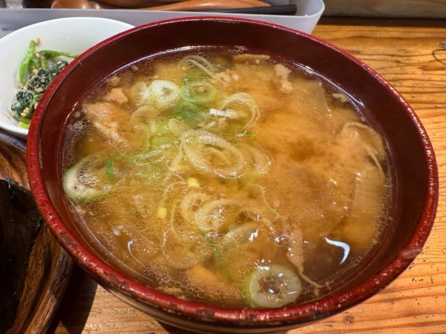 豚汁はたっぷり具沢山。満足度が高くて毎回頼んでしまいます。