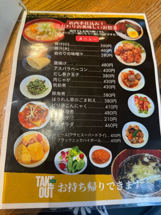 にぎりめしは、人気のシャケ、卵黄納豆。豚汁大、ほうれんそう胡麻和え、そしておいしそうな揚げたての唐揚げをいただきました。