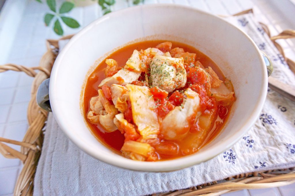 朝は温めるだけ!鶏肉と白菜の「だしトマト煮」の作り置き
