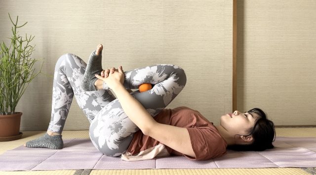 ほぐし終わったら、仰向けに寝る→両脚を天井方向に伸ばす→両脚を胸の方に引き寄せるようにしてストレッチを加えると、より効果的です♪