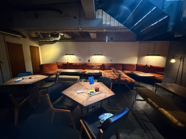 地下1階の素敵なソファやカウンター席が並ぶ空間で待ちます。