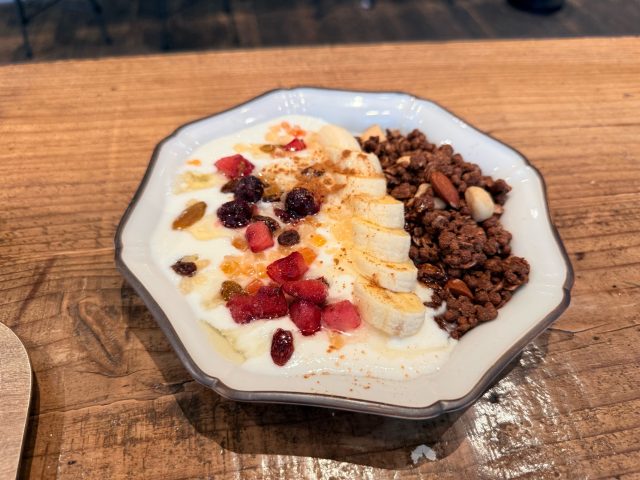 3品目はグラノーラヨーグルト。朝食用に栄養素がたっぷり入ったハイグラノーラ。パフがとってもおいしいし。ナッツもぎっしり。これは癖になりそう。