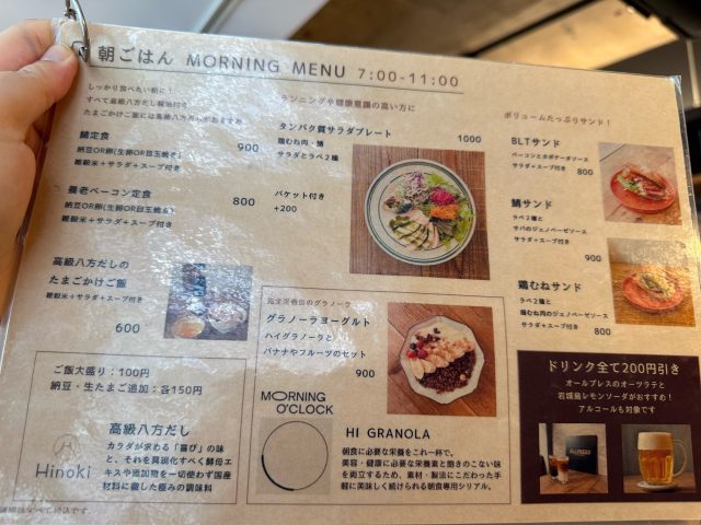 モーニングメニューは色々。この辺りはランナーの方も多いので、タンパク質をしっかり摂れるメニューも。全部おいしそう。