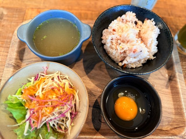 2品目。高級八方だしのたまごかけごはん。高級八方だしは国産材料に特化し添加物や酵母エキスを一切使わない天然の調味料。おいしい。