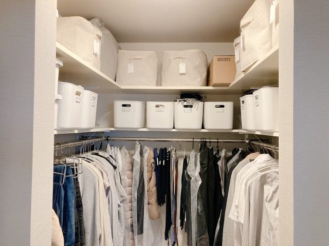 お気に入りだけを収納し、くたびれた服やサイズアウトした服は処分。クローゼットを開けた時に“全部着られる服”だけが並んでいるのが理想です◎