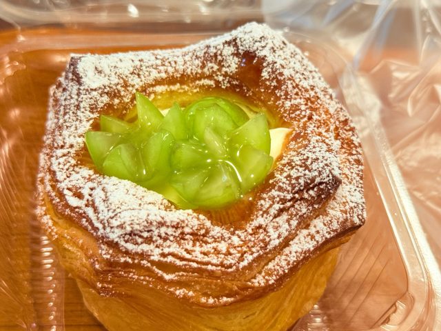 マスカットのデニッシュは、これまたジューシー。クリームとフラッシュなマスカットの果汁が口の中でベストなバランスで混ざり合います。