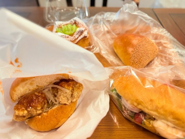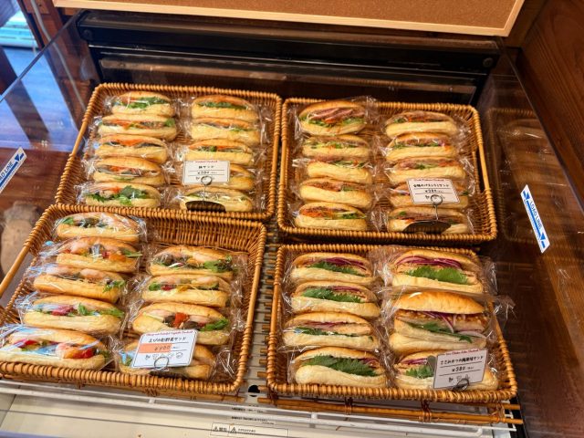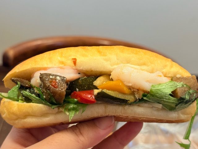 えびの彩サンドイッチはお野菜と大ぶりのエビがぎっしり。色々なサンドイッチを食べてきたけれど、このボリュームはなかなかないかも。地元特産のあおば小麦や新鮮野菜を使って作っているそう。地元愛に溢れています。
