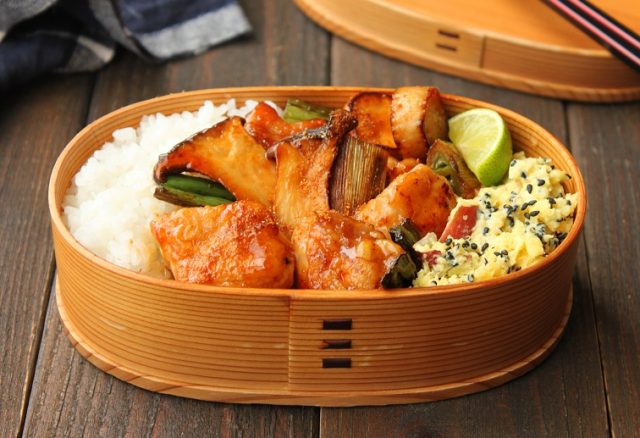 秋がギュッ!簡単「きのこ焼鳥丼」「さつまいものレンジサラダ」2品弁当