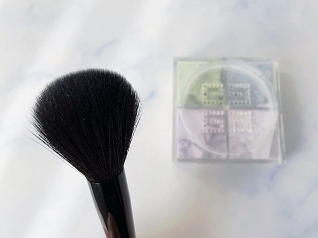 大きめのブラシでふわっと薄くのせれば、乾燥を防ぎつつ透明感はそのままキープできます。