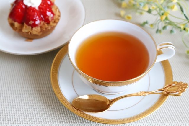 紅茶が基本。ミルク・砂糖を入れたい場合も、最初の一口はストレートで香りを楽しみながら味わいます。