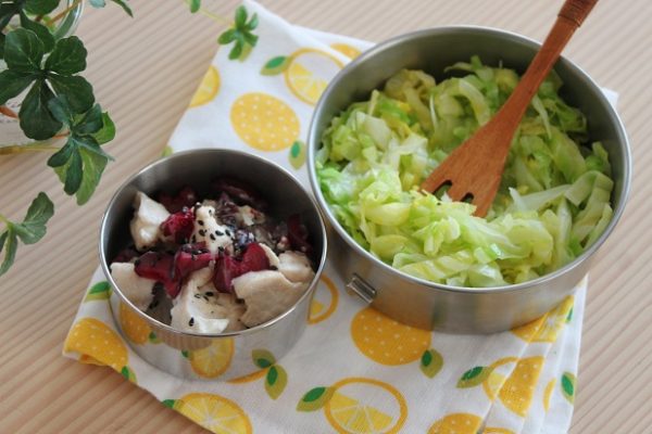 (ダイエットの強い味方!「梅ささみとキャベツのしらたきパスタ」弁当)