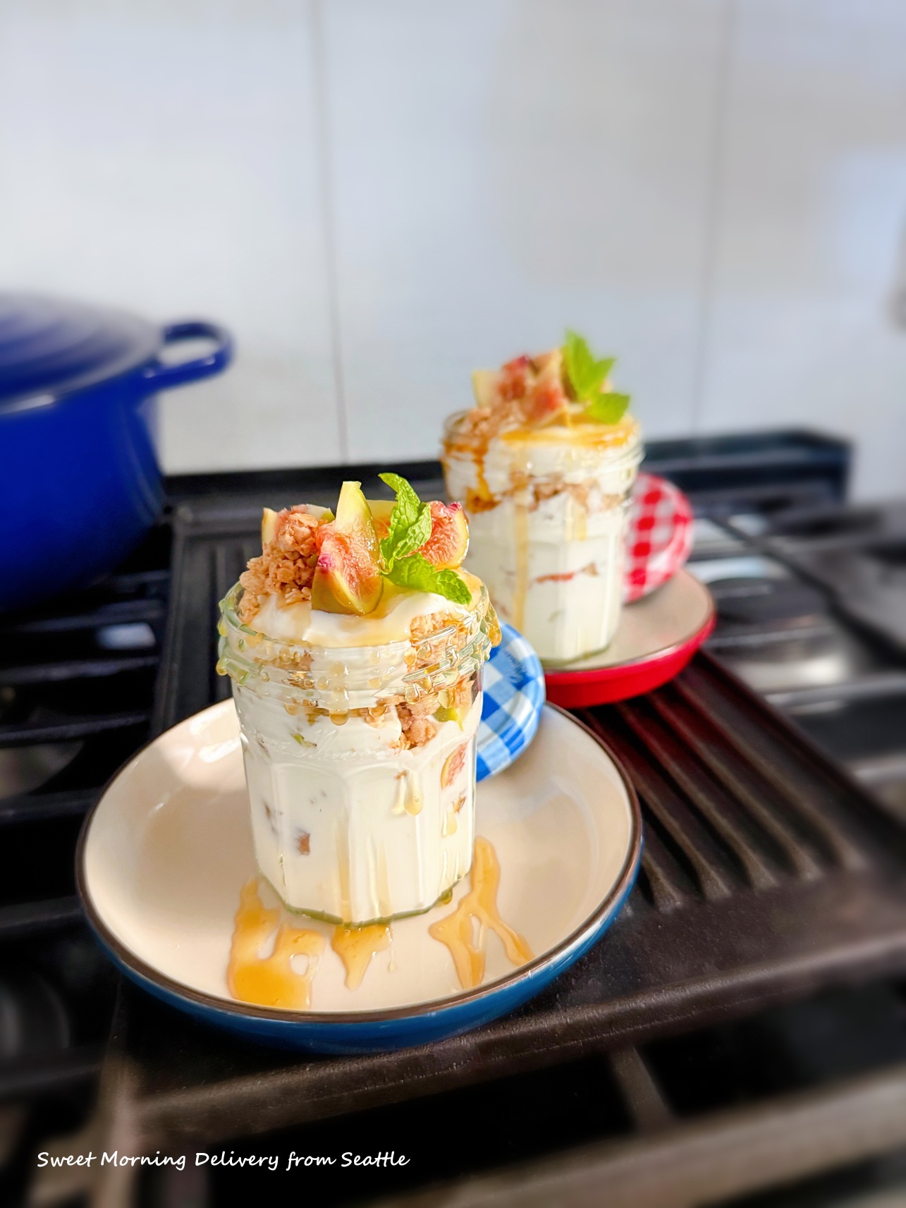 別の朝には、ギリシャヨーグルト、グラノーラ、いちじく、そこにはちみつを垂らしただけの朝ごはん。これもまた美味しいのでおすすめなんです。(単にいちじくが好きなだけ)