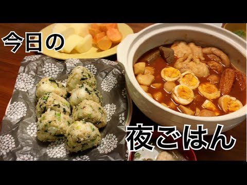 【料理・夜ごはん】2日目のおでんとカルシウムたっぷりおにぎりを作る料理動画
