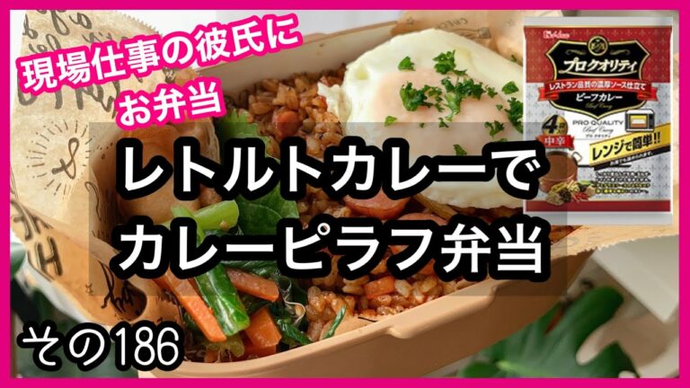 現場仕事の彼弁186♡【彼にほめられた】レトルトカレーでカレーピラフ弁当♪