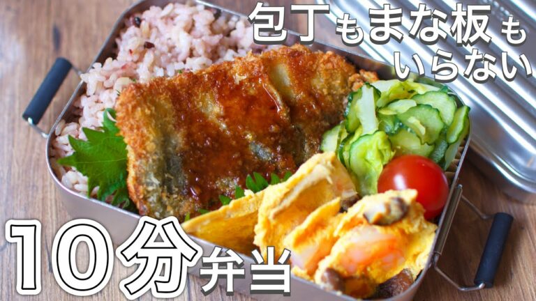 かんたんアジフライ弁当〜包丁もまな板もいらない【 10分弁当 】 【 bento 】(370)