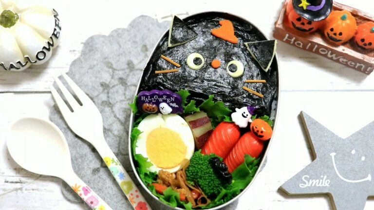 ハロウィン・黒ネコ ちゃんの お弁当 【 キャラ弁 / 顔弁 】How to make Japanese Bento of Black cat / Helloween / のり弁