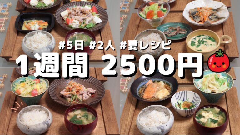 夏の夕飯1週間5日おかず2500円献立【節約レシピ】with ナスとピーマン嫌いな旦那さん(´・ω・`)(●`ε´●)2人暮らし(457)