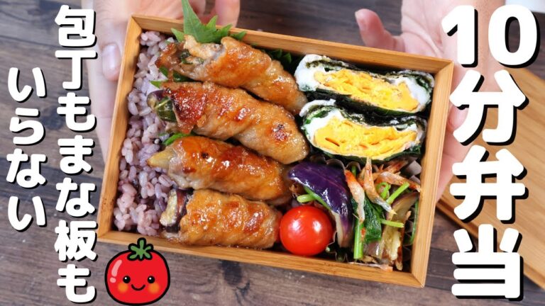 【10分弁当】梅しそポン酢で 豚バラ肉とナスの肉巻き弁当〜包丁もまな板もいらない〜 (460)