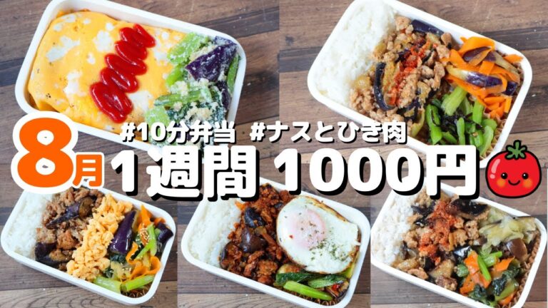 1週間お弁当(8月)🍱おかず1000円【節約レシピ】〜ナスと豚ひき肉〜【10分弁当】〜包丁もまな板もいらない〜(´・ω・`)(468)