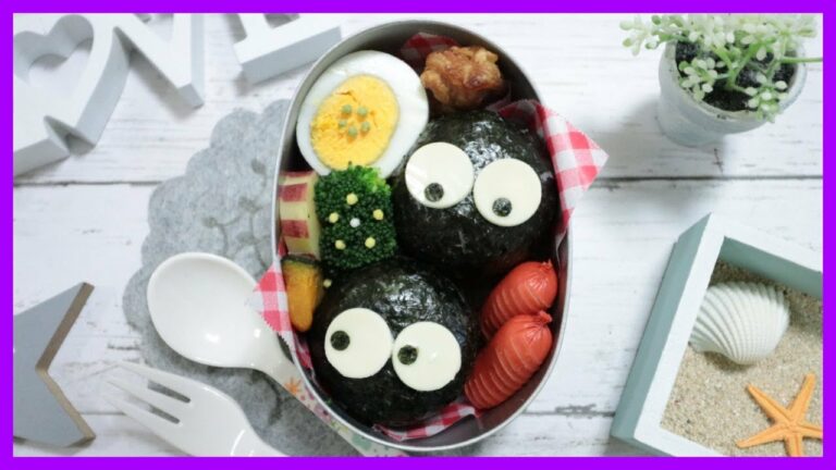 【 キャラ弁 】簡単 ! 小トトロ & まっくろくろすけ のお弁当 ■ となりのトトロ ■ Japanese Cute Bento Box