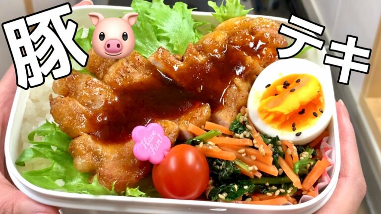 【お弁当作り】簡単おかずのトンテキ乗っけ弁当obento【旦那弁当】#282