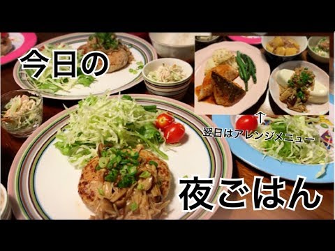 【料理】和風きのこハンバーグの夜ごはん作る料理動画。切り干し大根サラダ