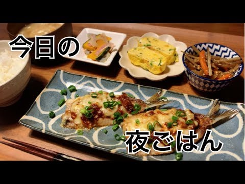 【料理・夜ご飯】イワシのネギ味噌チーズ焼きなど簡単和食を作る料理動画